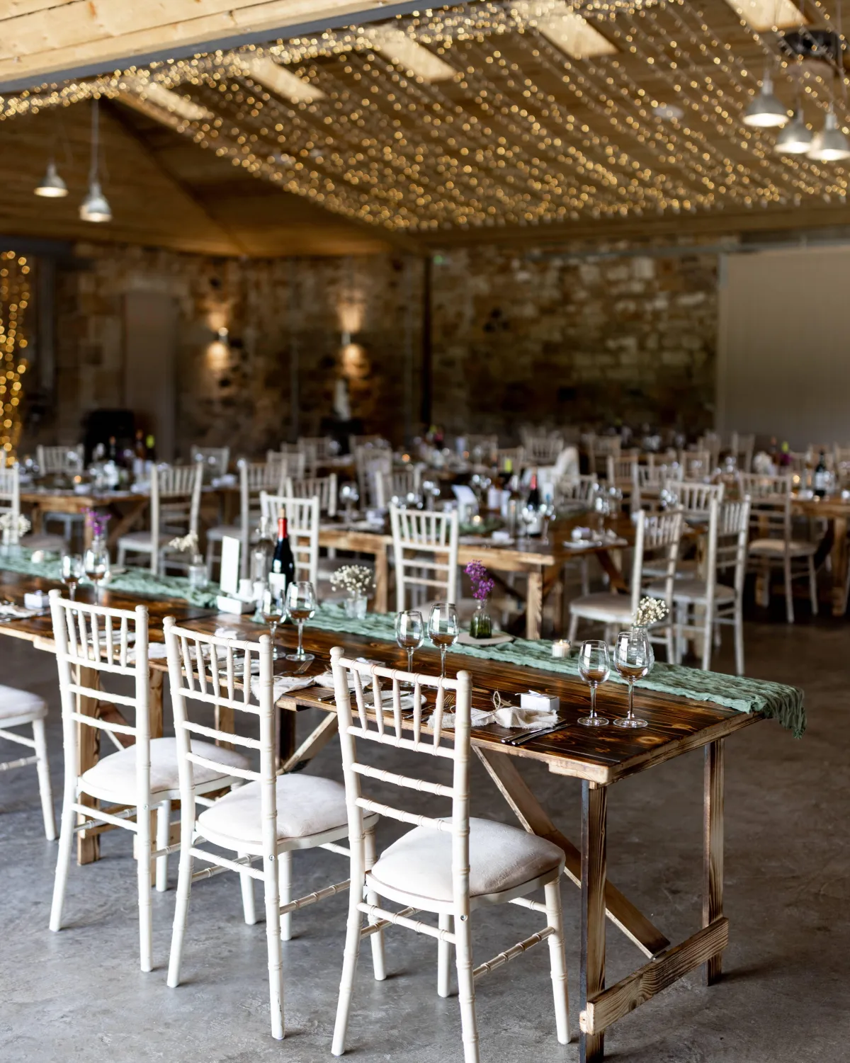 Today, it is one of our most loved spaces. With flagstone floors and open beams, it feels warm and welcoming, and comfortably hosts intimate ceremonies for up to 50 guests.
